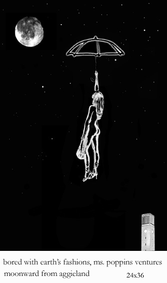 "Bored With Earth's Fashions, Ms.Poppins Ventures Moonward from Aggieland" 24x36